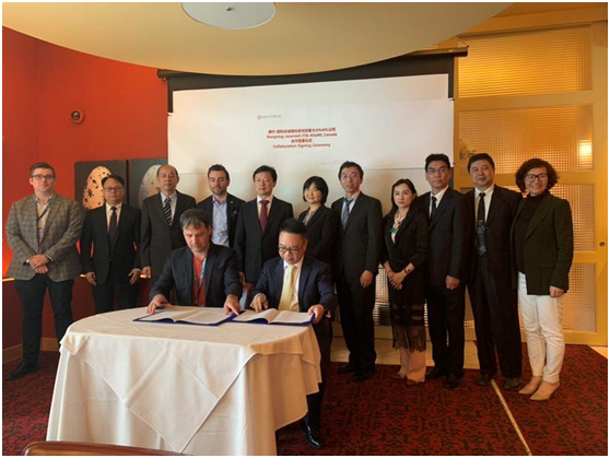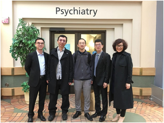 溫州醫科大學精神醫學學院黨委書記許冬武、耶利米信息科技有限公司董事長徐誼、總經理項健、溫州康甯醫院國合部主任王保鳳與艾伯塔大學精神醫學教授曹礴于艾伯塔大學